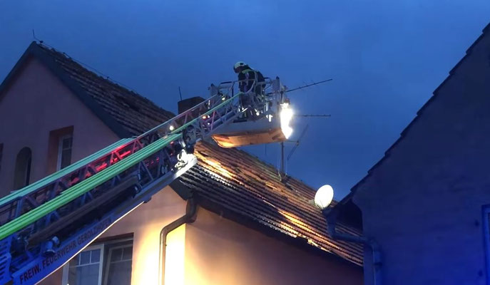 In der Herlindenstraße wurden mindestens acht weitere Dächer teilweise abgedeckt; Regenrinnen wurden zerstört; Durch umherfliegende Trümmerteile wurden ein Auto beschädigt; Mindestens ein Baum sowie eine Laterne wurde auf die Seite geneigt, jedoch nicht zu Fall gebracht (s. Bild 5-10). Der Tornado verließ den Ort kurz darauf wieder. Über weitere Schäden in Richtung SSO ist nichts bekannt.