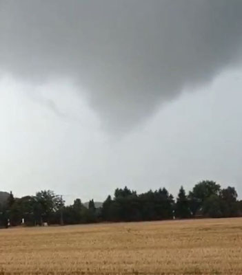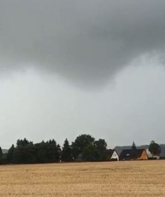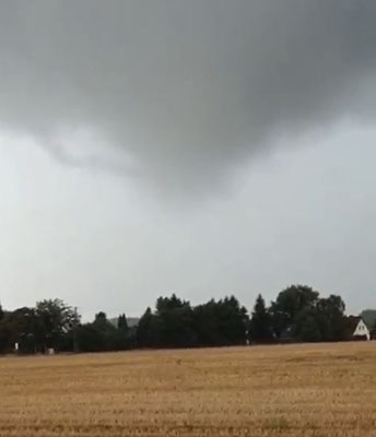 Kurz darauf verlor der Tornado ersichtlichen Bodenkontakt. Die rotierende Wolkenbasis hielt sich jedoch weiterhin (s. Bild 12-14). Über weitere Auswirkungen ist nichts bekannt.