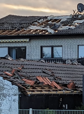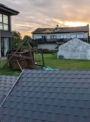 Dachteile wurden bis zu mindestens 70 Meter weit in westsüdwestliche Richtung verfrachtet und verursachten mehrere Folgeschäden, unter anderem an einem Pkw und an Photovoltaikmodulen. Im weiteren Verlauf des «Böhmkeswegs» wurden mindestens vier weitere Dächer teilweise abgedeckt (s. Bild 9 - BNTS/1: IF1).