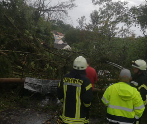 Im Norden von Halsdorf kam es besonders im Bereich der Straßen »Zum Sonnenhof« und »b. d. Alten Kirche« zu Vegetationsschäden auf mehreren Grundstücken, wo einige Bäume und teils große Äste abbrachen (s. Bild. 18-20). Der Tornado zog weiter Richtung Bettingen und sorgte dort u. a. in der »Burgstraße« für Schäden an mindestens einem Hausdach. »Auf den Märchen« wurde ein Dachpavillon zerstört.